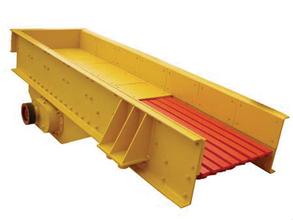 振動(dòng)給料機(jī)在生產(chǎn)流程中,可把塊狀、顆粒狀物料從貯料倉(cāng)中均勻、定時(shí)、連續(xù)地給到受料裝置中去,在砂石生產(chǎn)線中可為破碎機(jī)械連續(xù)均勻地喂料,并對(duì)物料進(jìn)行粗篩分。振動(dòng)給料機(jī)結(jié)構(gòu)簡(jiǎn)單、運(yùn)行可靠、調(diào)節(jié)安裝方便、重量輕、體積小、維護(hù)保養(yǎng)方便,當(dāng)采用封閉式結(jié)構(gòu)機(jī)身時(shí)可防止粉塵污染。